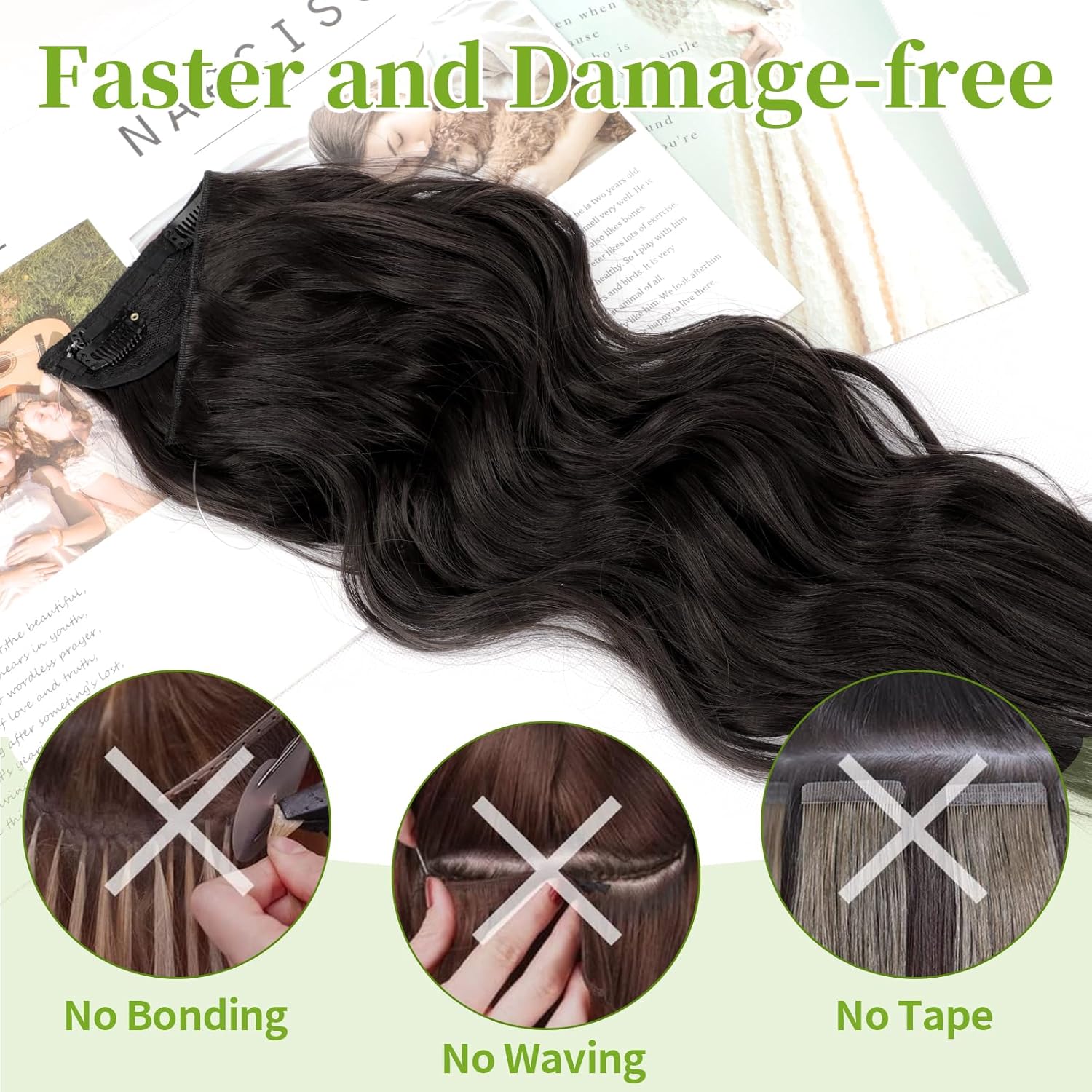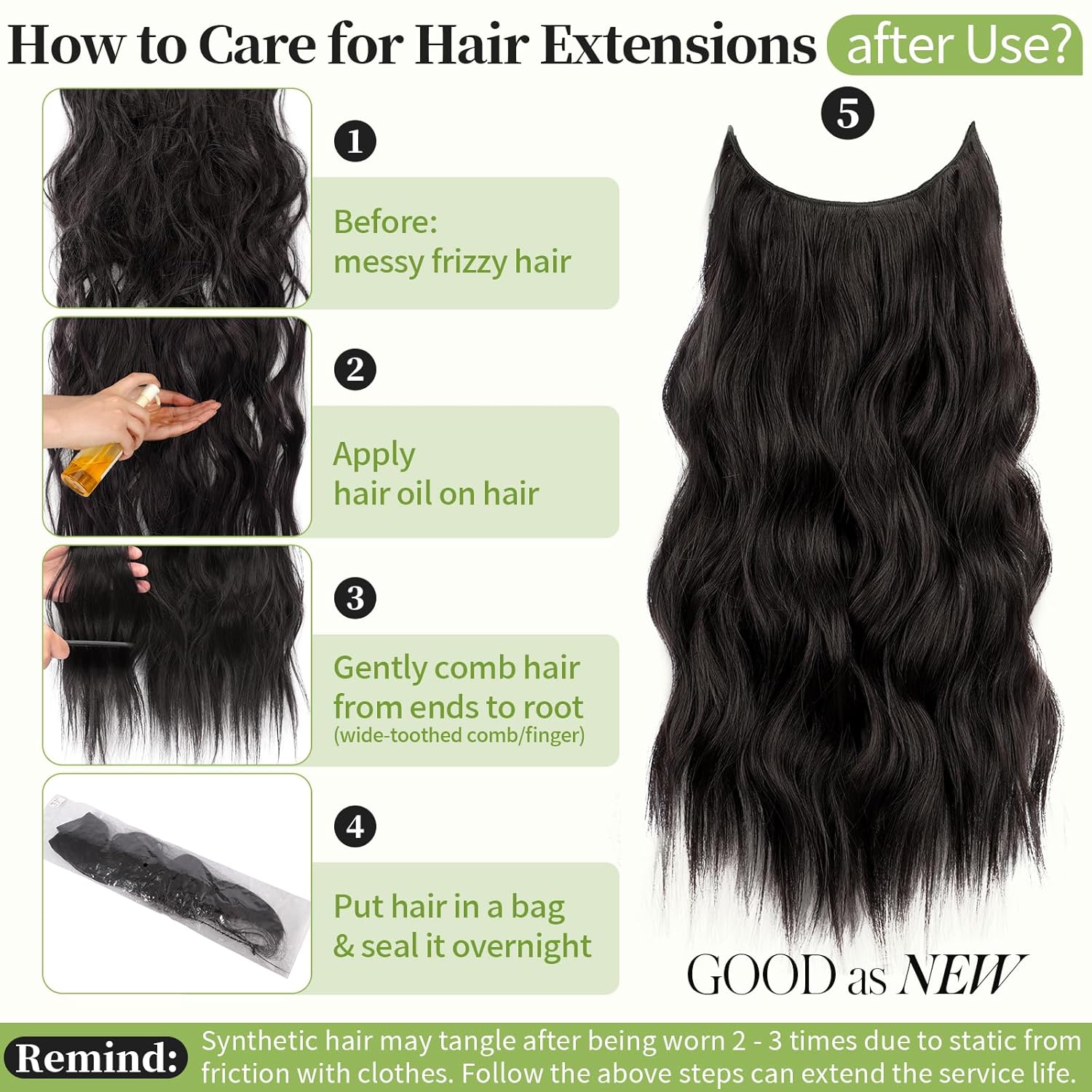 KooKaStyle Invisible Wire Hair Extensions with Transparent Wire Adjustable Size 4 Secure Clips Long Wavy Secret Synthetic Hairpiece 20 Inch 120g Rich Dark Brown with Warm Tones for Women