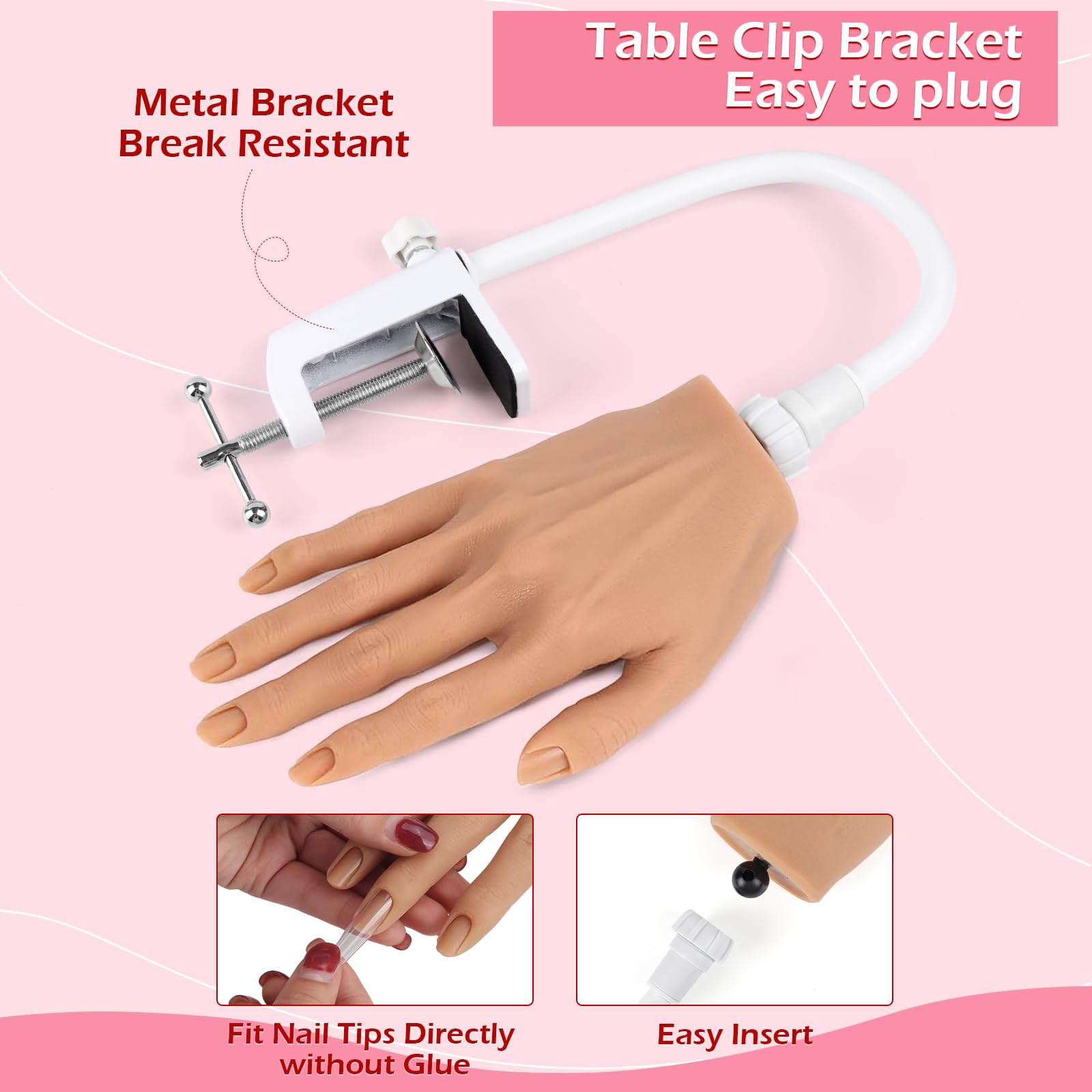 LIONVISON Practice Hand for Acrylic Nails, Silicone Nail Hand Practice, Flexible Fingers Fake Training Hand False Mannequin Hands for Nail Practice, Hand Model Kit for Nail Supplies Manicure Beginners