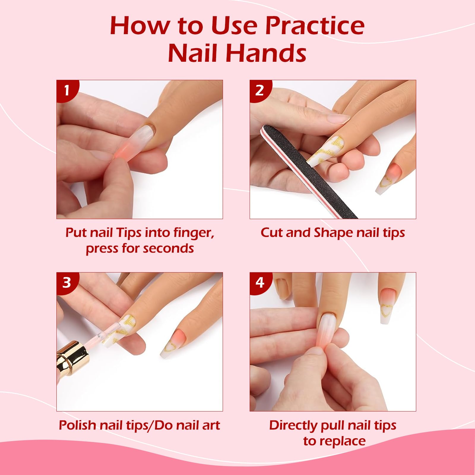 - 【What you Will Get】 This helpful nail art tool includes a training practice hand,a white stand bracket table clamp and 240PCS clear long coffin Nail Tips. It's perfect for nail art trainers practicers and nail artists,quite a good tool to help nail care starters become a nail art expert.At the same time, for salon nail teaching salons, nail center institutions, is the basic and best choice.