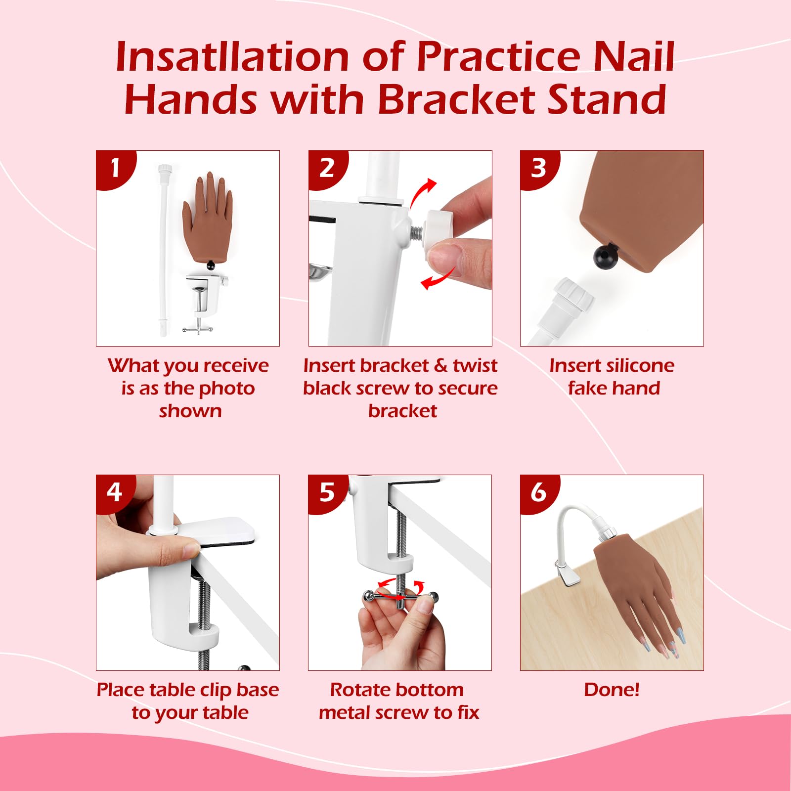 - 【Bendable Arm Bracket Table Clamp】 With white table clamp base, extendable bracket length is 16.73 inch. Training hand can be directly inserted into the bracket,don't need other procedures, easy to plug and play.The adjustable thickness of the base can clamp to most tables. Just adjust and tighten the bolts at the end of the table clamp.This stabilizes the position and angle of the prosthetic hand, greatly improve the portability of the manicure,super convenient.