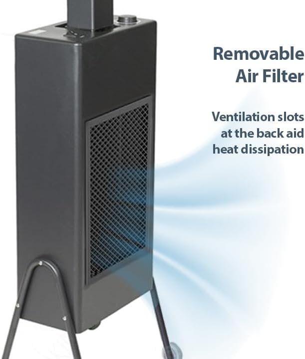 - Hood has 12" diameter and can be raised an additional 8" for tall clients.