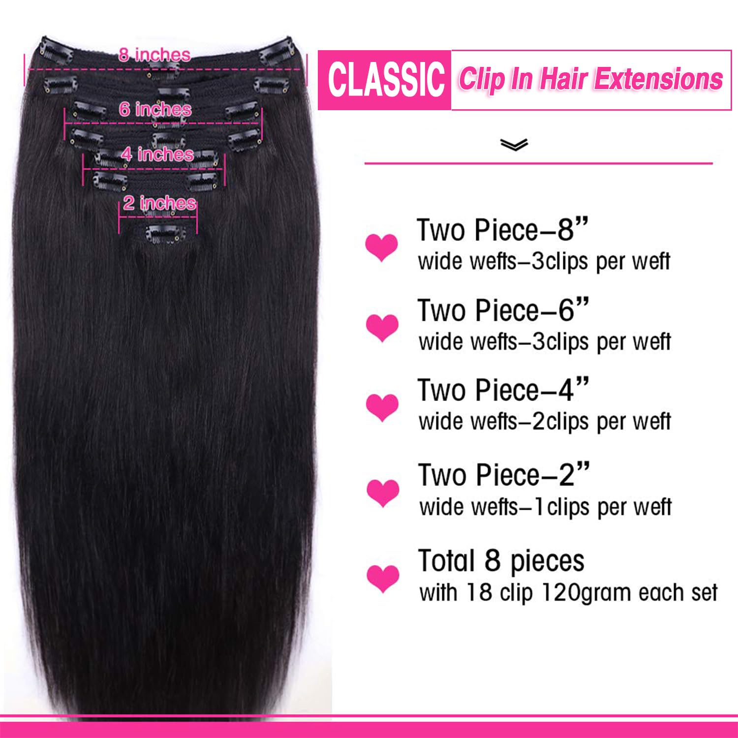 【Straight Clip in Hair Extensions】 120g(4.2 oz)/ 8 pieces / 18 clips per set. Straight hair clip ins extensions Available from 12 inches to 30 inches. According to your own hair volume, usually 2 packs can fill your head, increasing length and volume. If you like thicker hair, it is recommended to buy 3 packs.