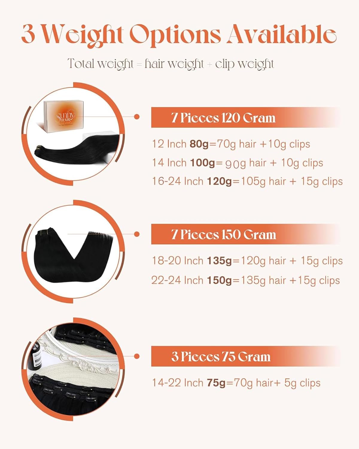 Secure and Safe Design: Sunny Hair clip in extensions real human hair are designed with seven evenly distributed clips and durable metal construction for a strong hold that prevents slipping; ensures a secure and safe fit